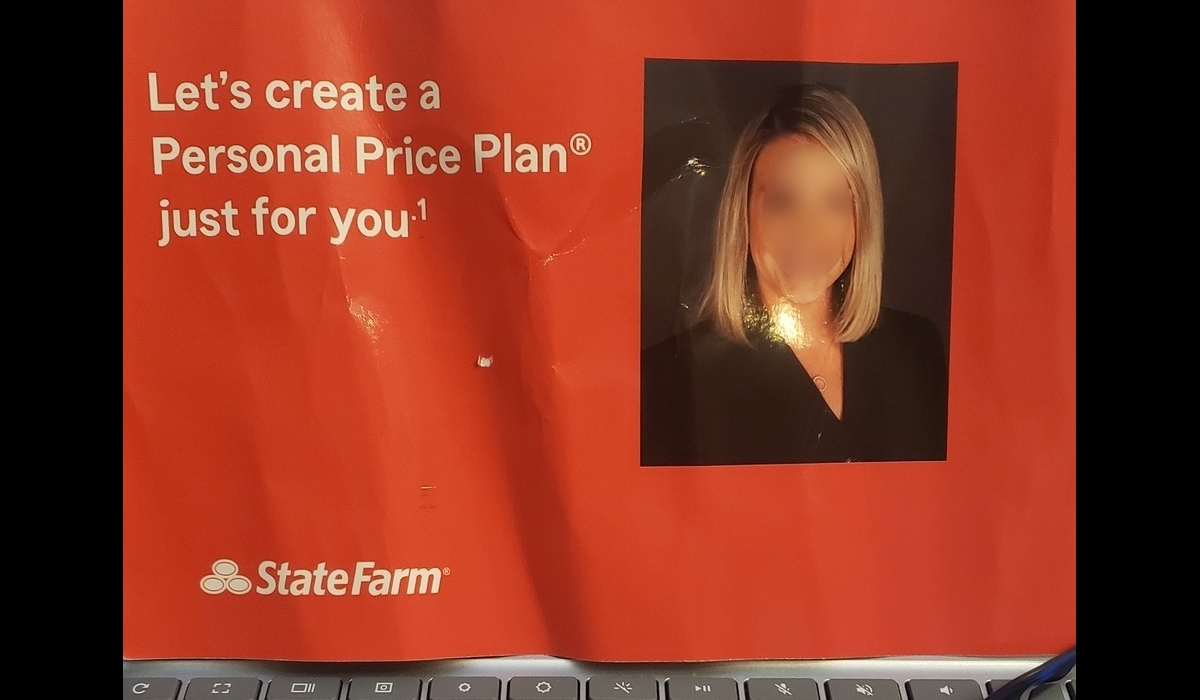 The State Farm logo reinforces the troubling issue by revealing the product before the benefit.